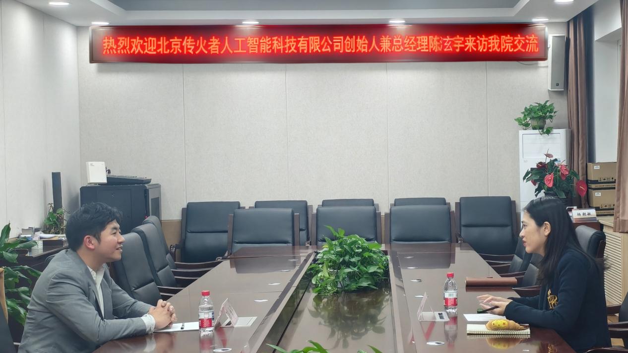 11月26日晚,北京传火者人工智能科技有限公司创始人兼总经理陈泫宇到访爱情岛论坛 ,与党委副书记兼副院长李娟就学生实习实践合作、创新创业竞赛赋能等事宜座谈。